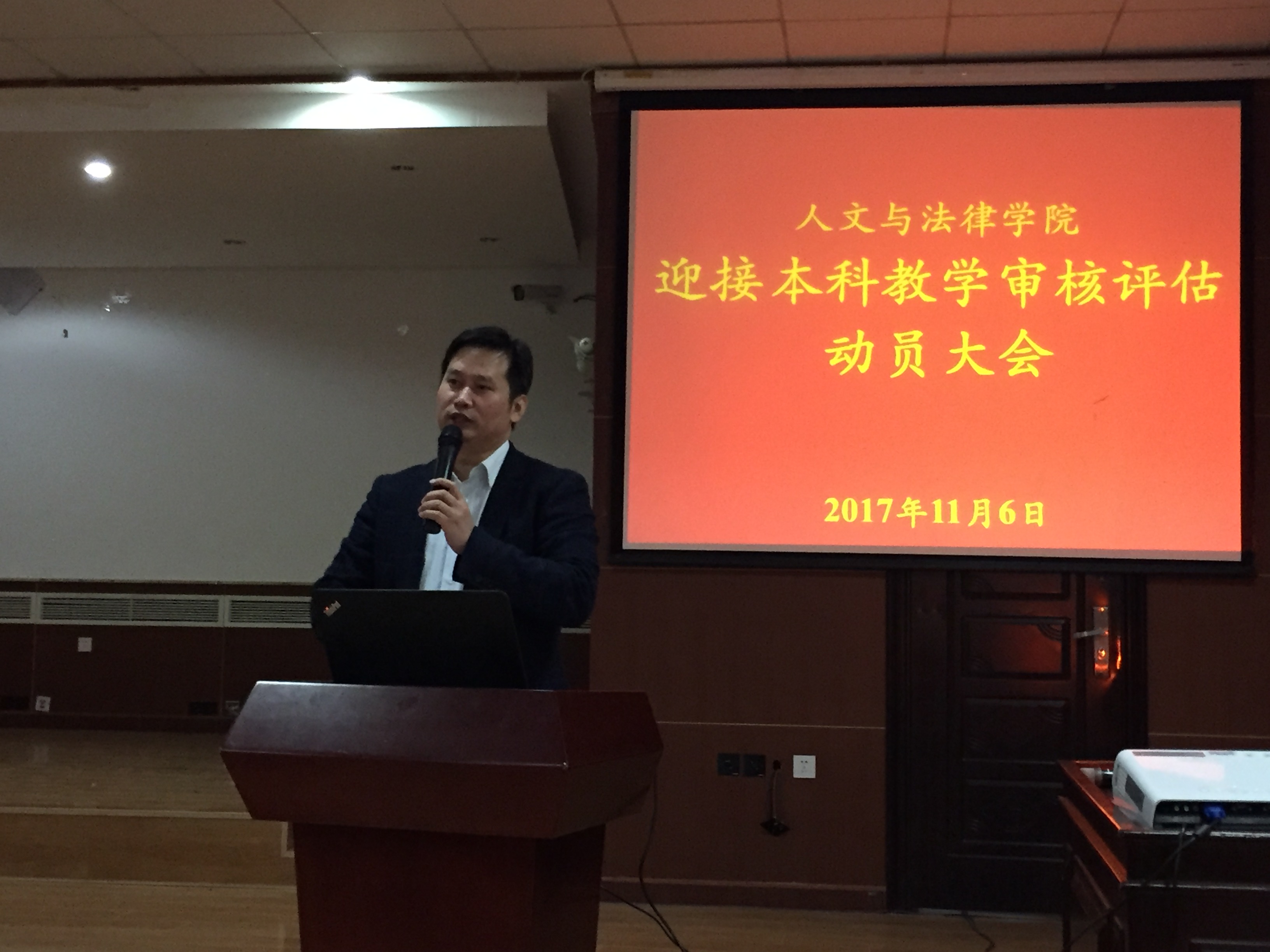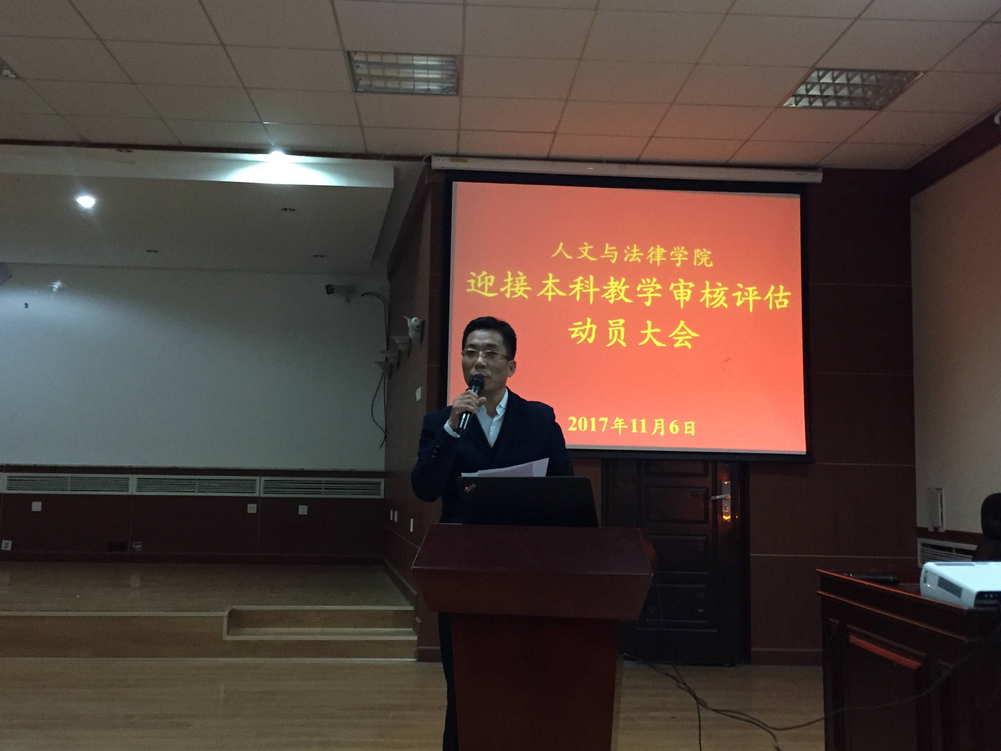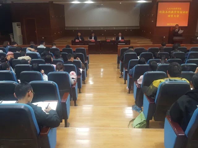 2017年11月6日,学院召开迎接本科教学审核评估动员大会,会议由学院党委书记白彦刚同志主持召开,院长李子彪、副书记李彦磊、副院长马立民以及各年级辅导员全员参加,同时参加会议的还有各年级主要学生干部及院学生会的主席和各部部长总计135人。