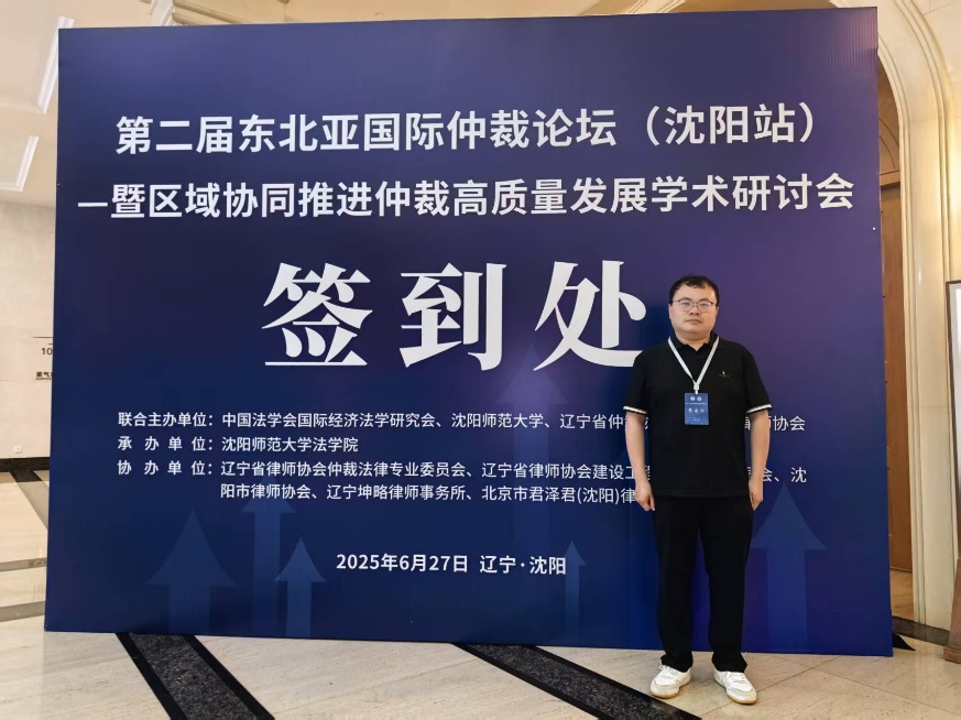 2025年6月27日,河北工业大学人文与法律学院法学系教师李飞参加第二届东北亚国际仲裁论坛(沈阳站)暨区域协同推进仲裁高质量发展学术研讨会。本届论坛由中国法学会国际经济法学研究会、沈阳师范大学、辽宁省仲裁协会、辽宁省律师协会联合主办,沈阳师范大学法学院承办,辽宁省律师协会仲裁法律专业委员会、辽宁省律师协会建设工程法律专业委员会、沈阳市律师协会、辽宁坤略律师事务所、北京市君泽君(沈阳)律师事务所协办。吸引了来自全国各地的仲裁领域精英、资深学者、法律从业者及企业界代表,共同探讨东北亚区域仲裁中心的建设与仲裁协同机制的创新发展路径。会上,李飞老师受聘为辽宁省法学会仲裁法研究会仲裁理论与实务创新专门委员会成员。