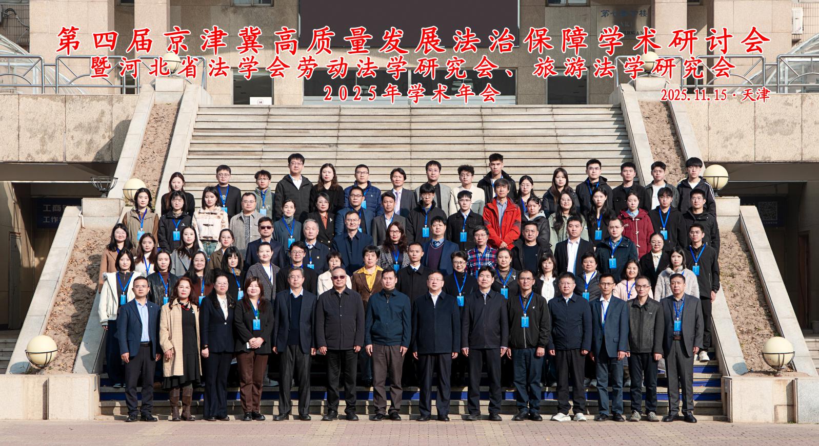 2025年11月15日,第四届京津冀高质量发展法治保障学术研讨会暨河北省法学会劳动法学研究会、旅游法学研究会2025年学术年会成功在津举办,来自京津冀高校和实务部门的专家、学者、法官、检察官、律师、企业法务负责人和学生一百余人参加了会议。本次会议由河北省法学会、河北工业大学主办,河北省法学会劳动法学研究会、河北省法学会旅游法学研究会、河北工业大学人文与法律学院承办。