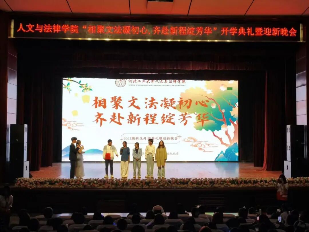 金秋送爽,丹桂飘香。9月25日晚七点半,人文与法律学院2025级新生开学典礼暨迎新晚会于北辰校区大学生活动中心世纪礼堂隆重举行。学院领导、各系主任、教师代表及全体新生齐聚一堂,共同见证这一庄严而温暖的时刻。