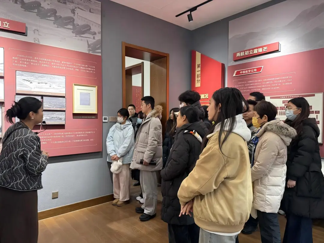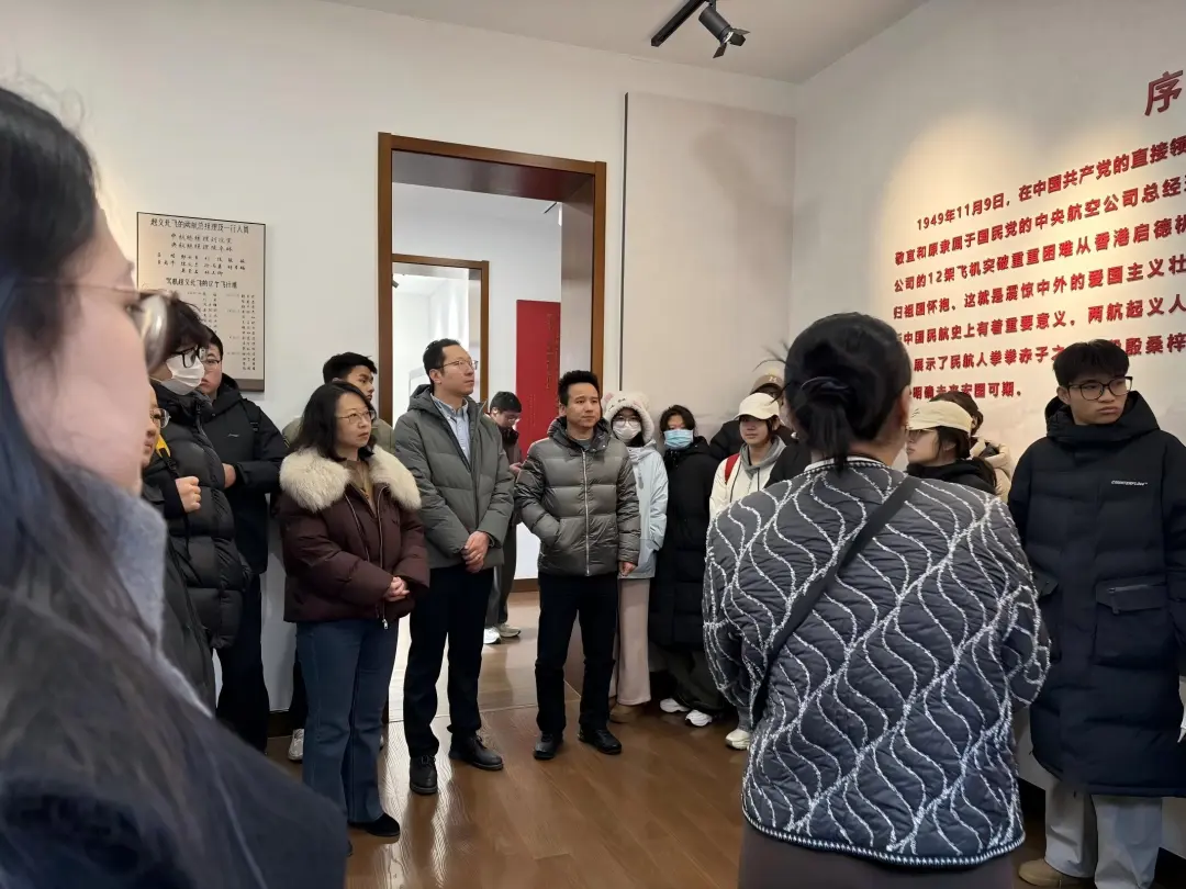 12月28日,河北工业大学人文与法律学院携手天津校友会,将课堂搬到了中国民航大学生思政课实践教育基地——两航起义纪念馆。纪念馆由民航局党组和学校党委共同建成,是天津市目前唯一以民航红色历史为主题的教育基地,为本次“红色”主题的“大思政课”提供了鲜活载体。